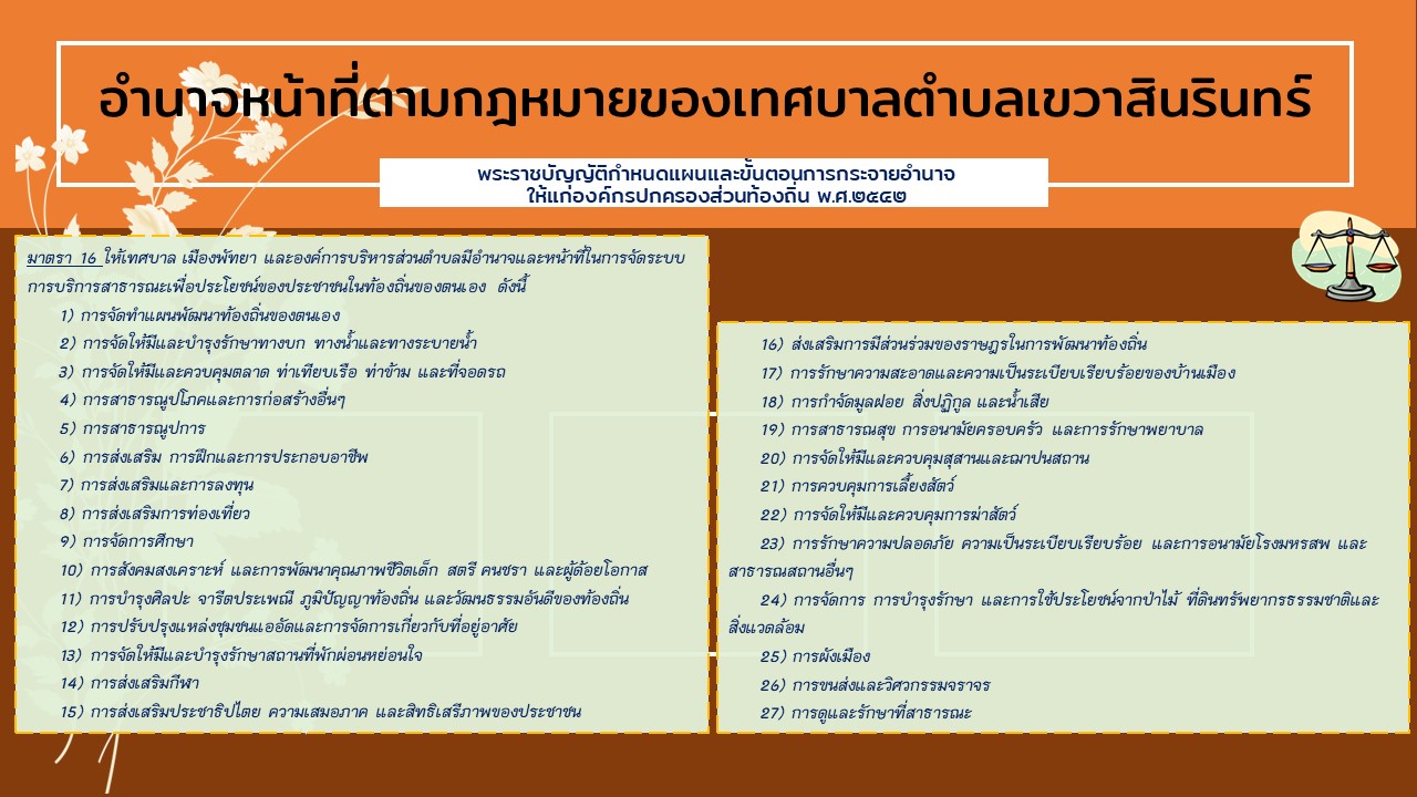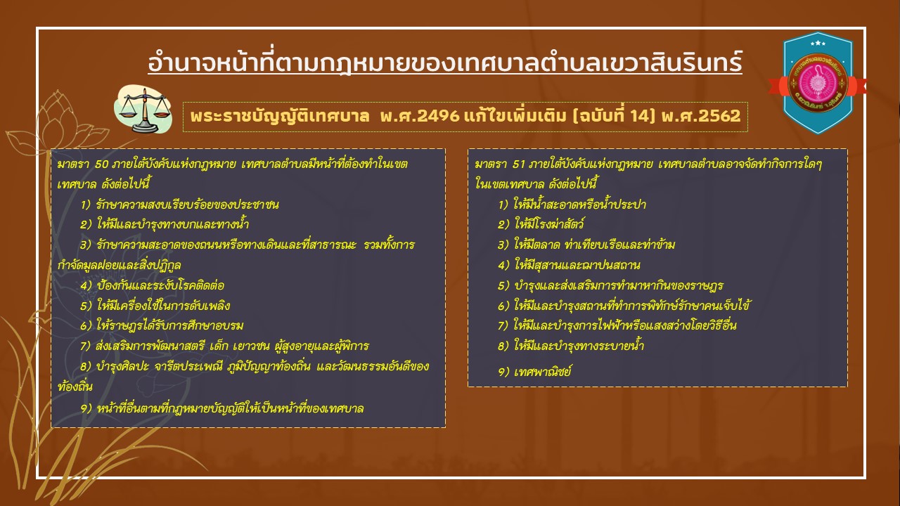 เทศบัญญัติเทศบาลตำบลเขวาสินรินทร์